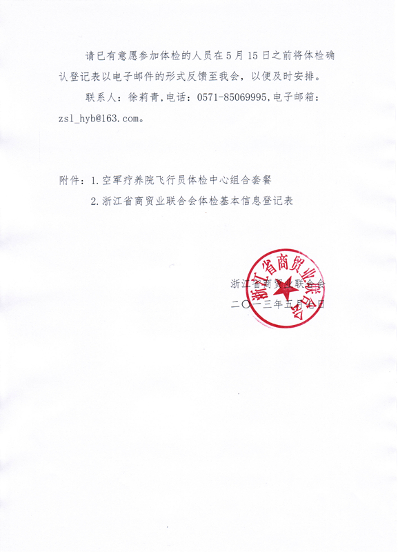 请已有意愿参加体检的人员在5月15日之前将体检确认登记表以电子邮件的形式反馈至我会,以便及时安排。