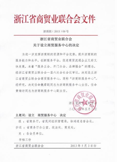 关于设立商贸服务中心的决定