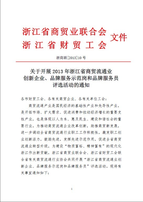 关于开展2013年商贸流通业创新企业、品牌流通示范岗和品牌服务员评选活动的通知