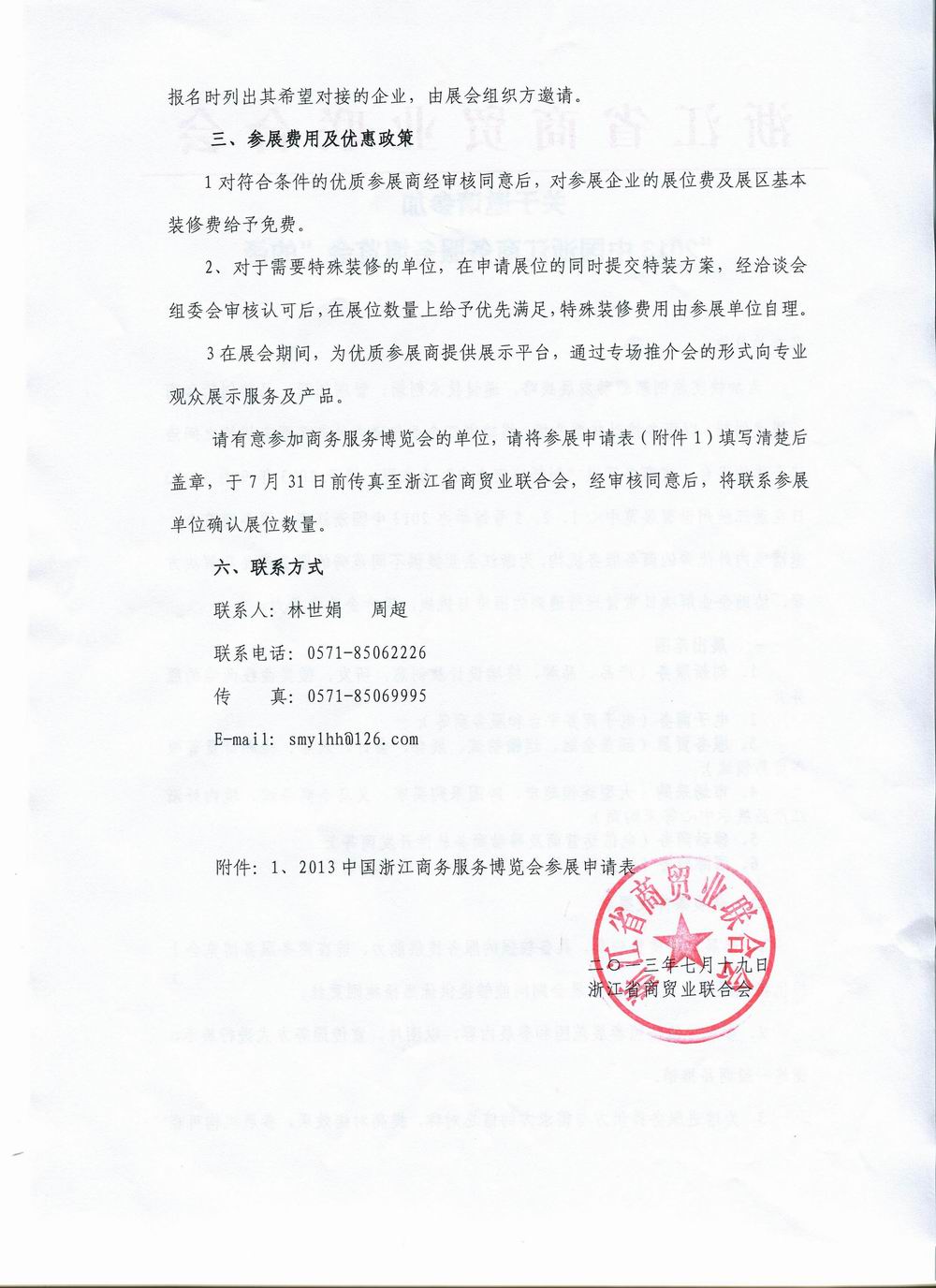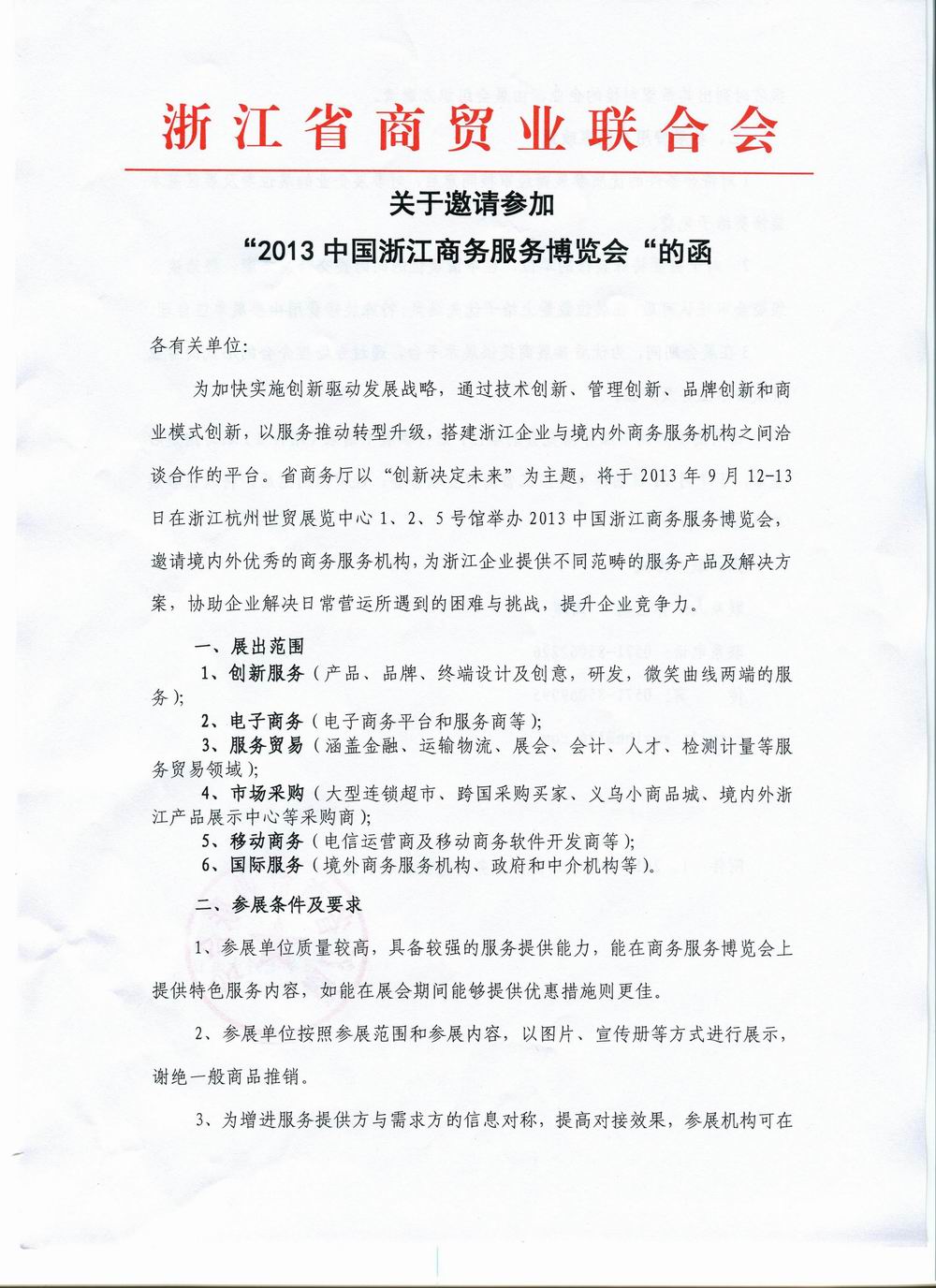 关于邀请参加“2013年中国浙江商务服务博览会”的函