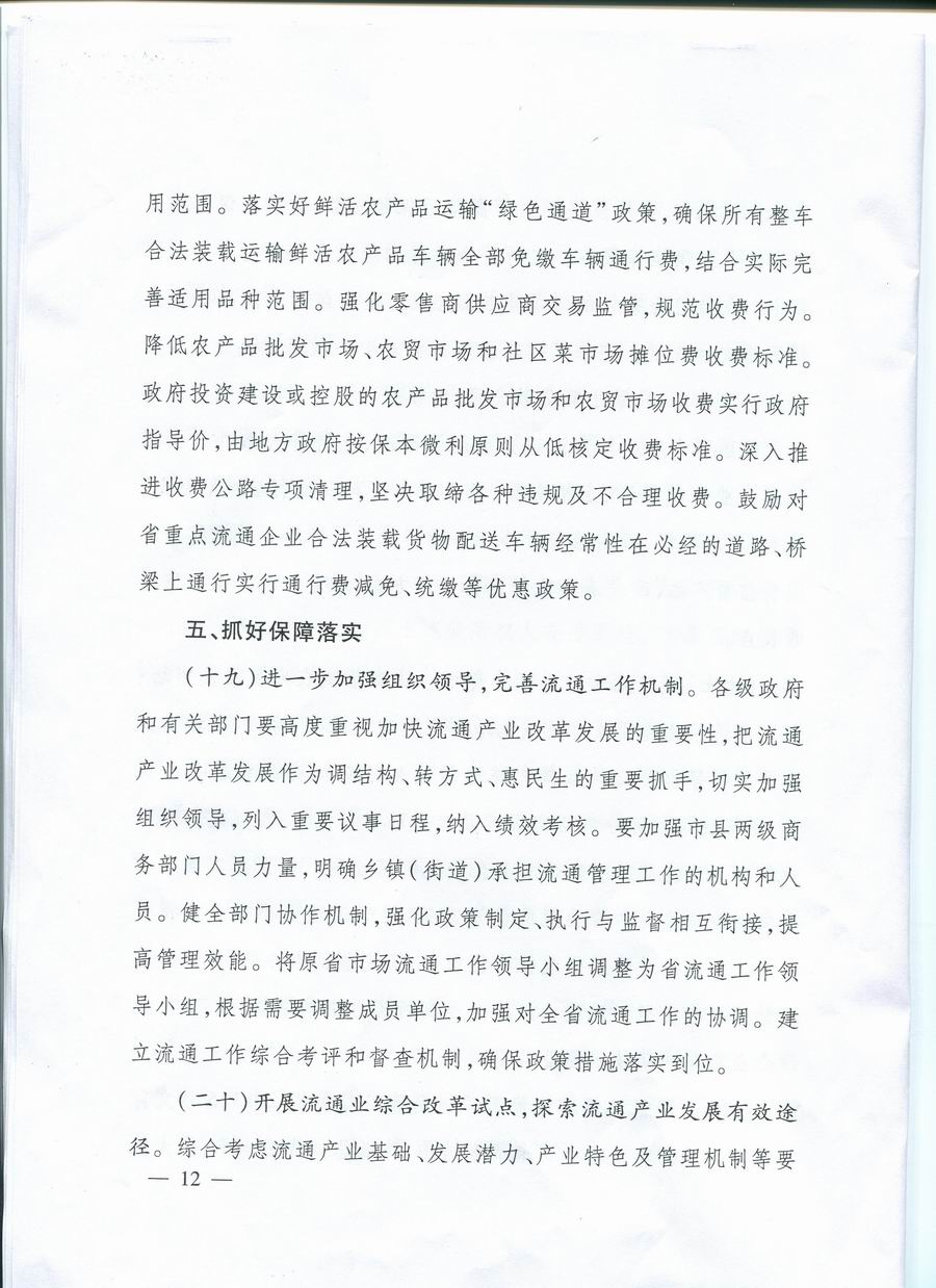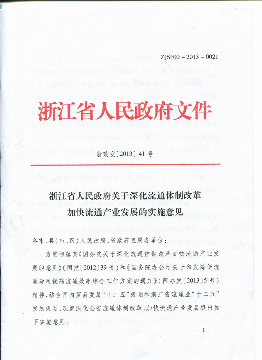 浙江省人民政府关于深化流通体制改革加快流通产业发展的实施意见