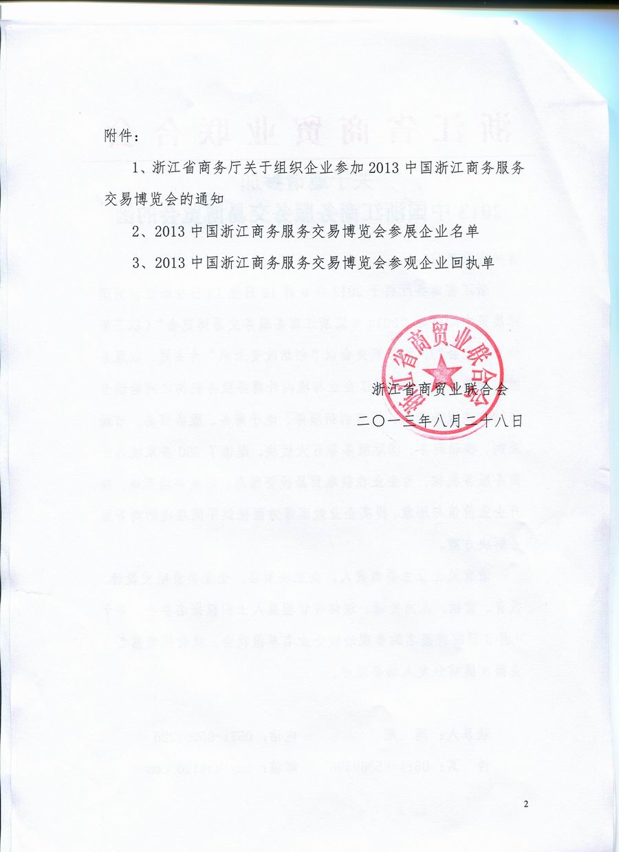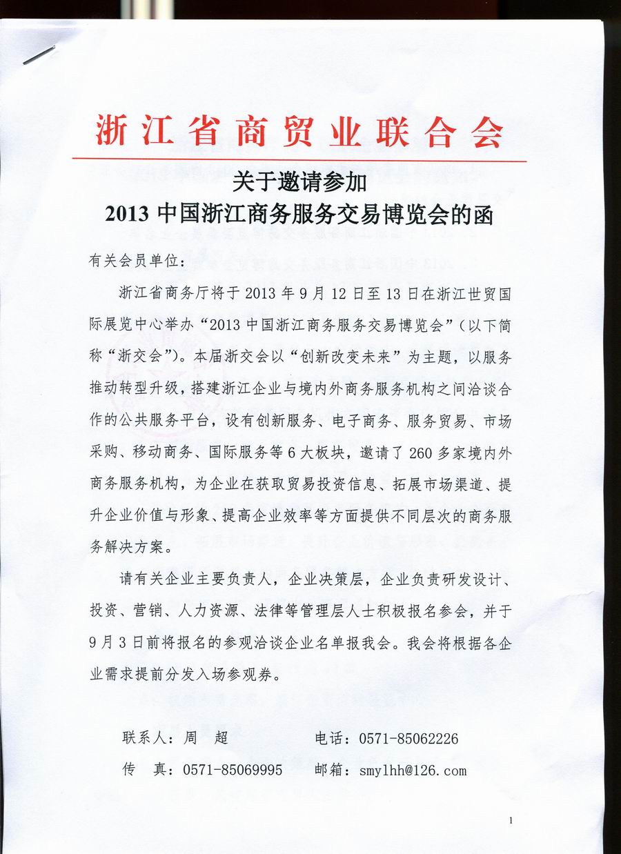 关于邀请参加 2013中国浙江商务服务交易博览会的函