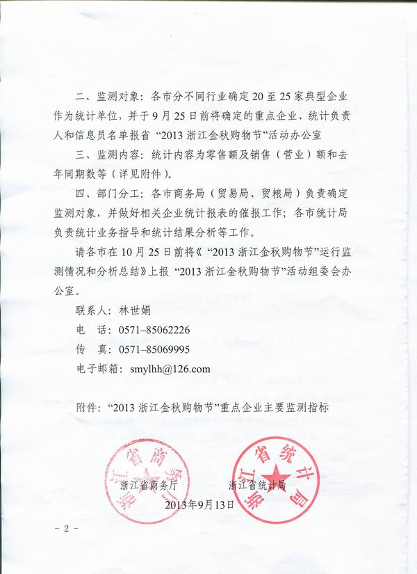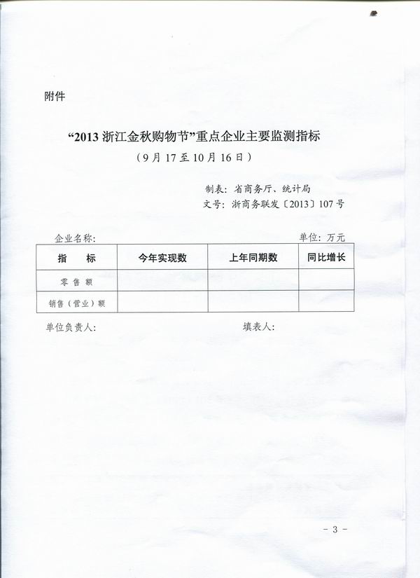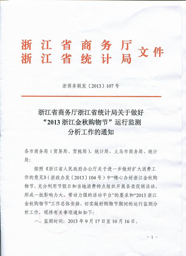 浙江省商务厅浙江省统计局关于做好“2013浙江金秋购物节”运行监测分析工作的通知
