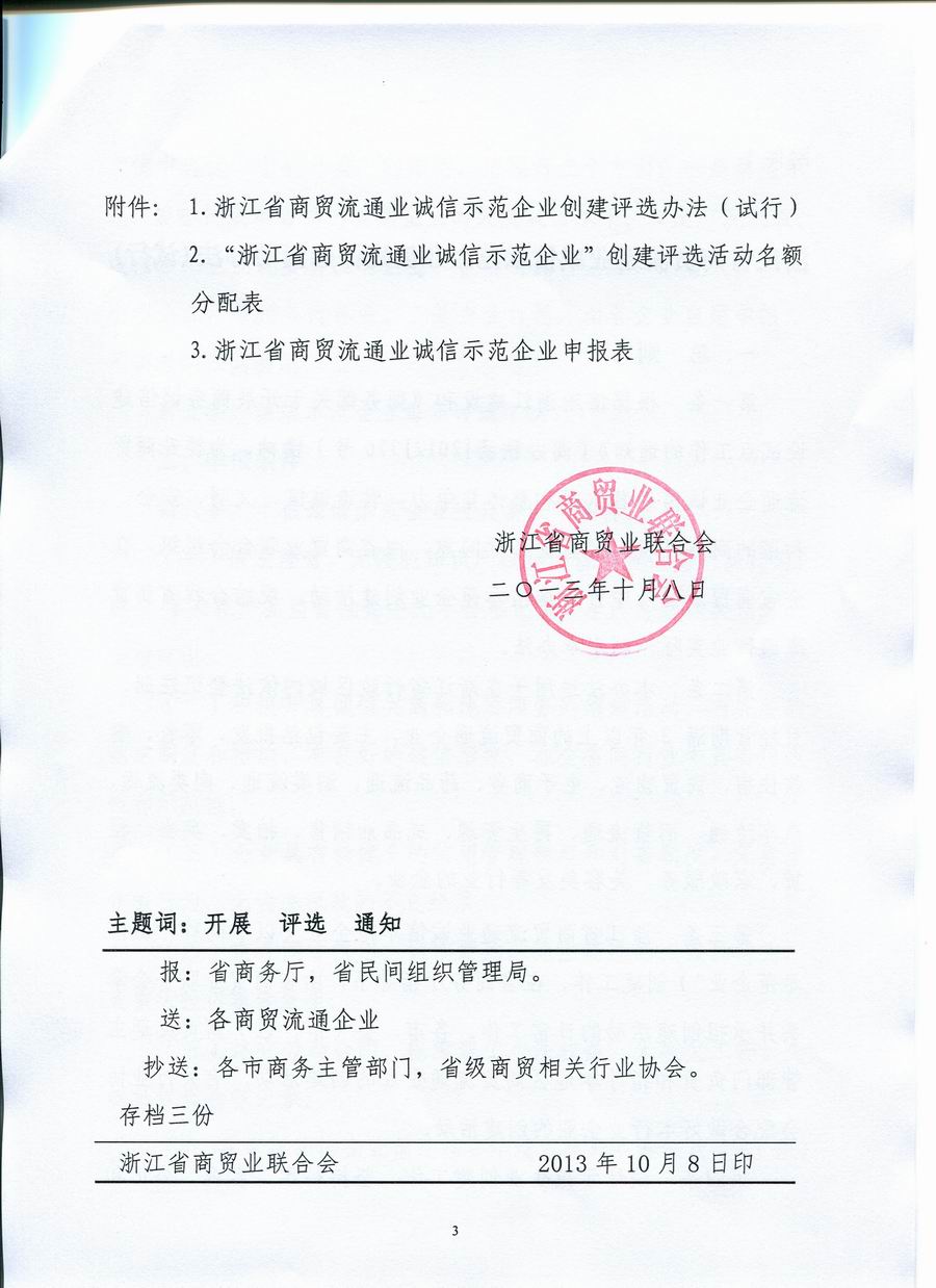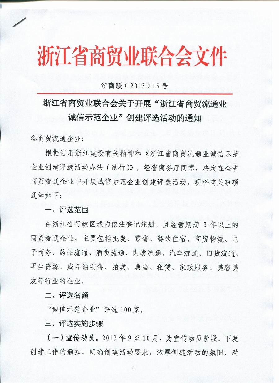 “浙江省商贸流通业诚信示范企业”