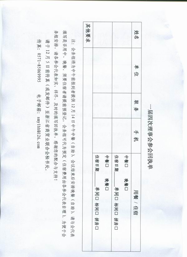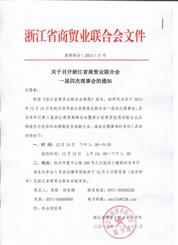 关于召开浙江省商贸业联合会一届四次理事会的通知