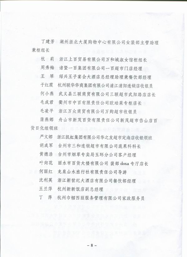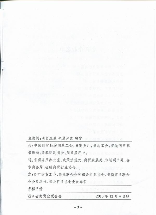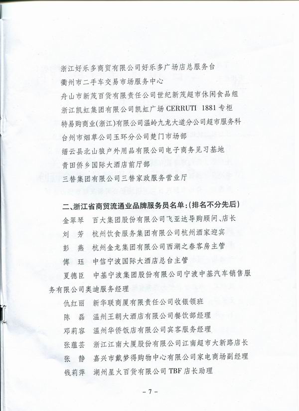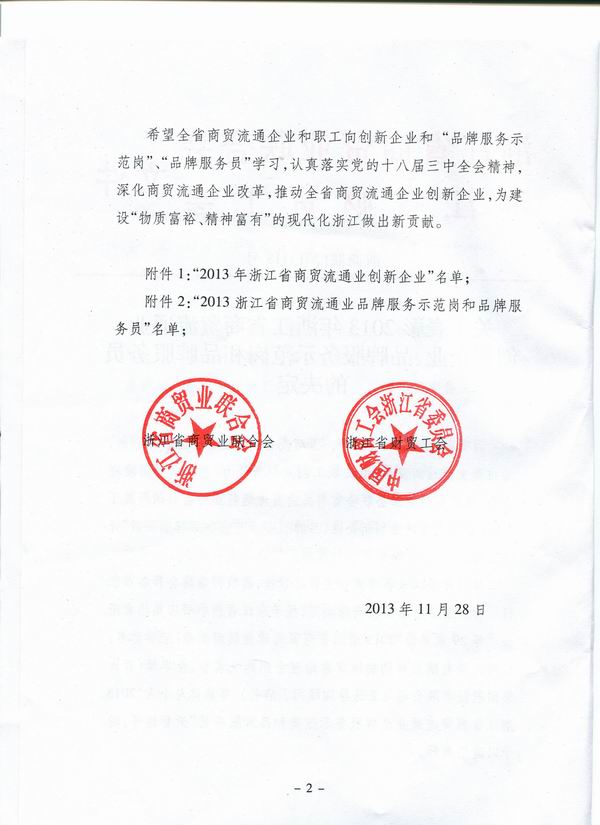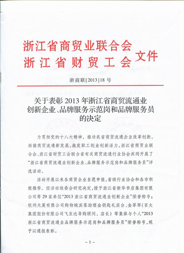 关于表彰2013年浙江省商贸流通业创新企业、品牌服务示范岗和品牌服务员的决定