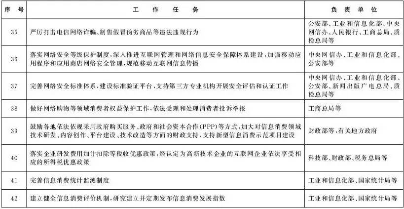 到2020年,信息消费规模预计达到6万亿元,年均增长11%以上;信息技术在消费领域的带动作用显著增强,信息产品边界深度拓展,信息服务能力明显提升,拉动相关领域产出达到15万亿元,信息消费惠及广大人民群众。信息基础设施达到世界领先水平,“宽带中国”战略目标全面实现,建成高速、移动、安全、泛在的新一代信息基础设施,网络提速降费取得明显成效。基于网络平台的新型消费快速成长,线上线下协同互动的消费新生态发展壮大。公共数据资源开放共享体系基本建立,面向企业和公民的一体化公共服务体系基本建成。网络空间法律法规体系日趋完善,高效便捷、安全可信、公平有序的信息消费环境基本形成。