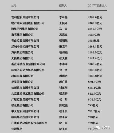以下是“浙商银行‘涌金’票据池·2018浙商全国500强”榜单前二十强名单: