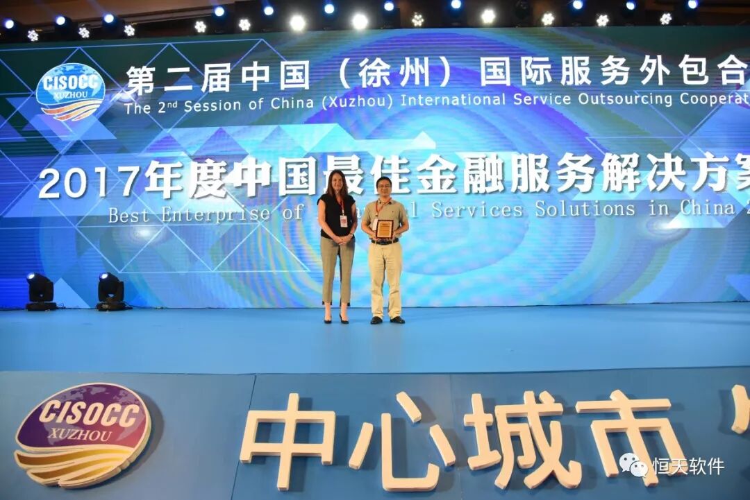 图1:恒天软件荣获“2017年度中国最佳金融服务解决方案”