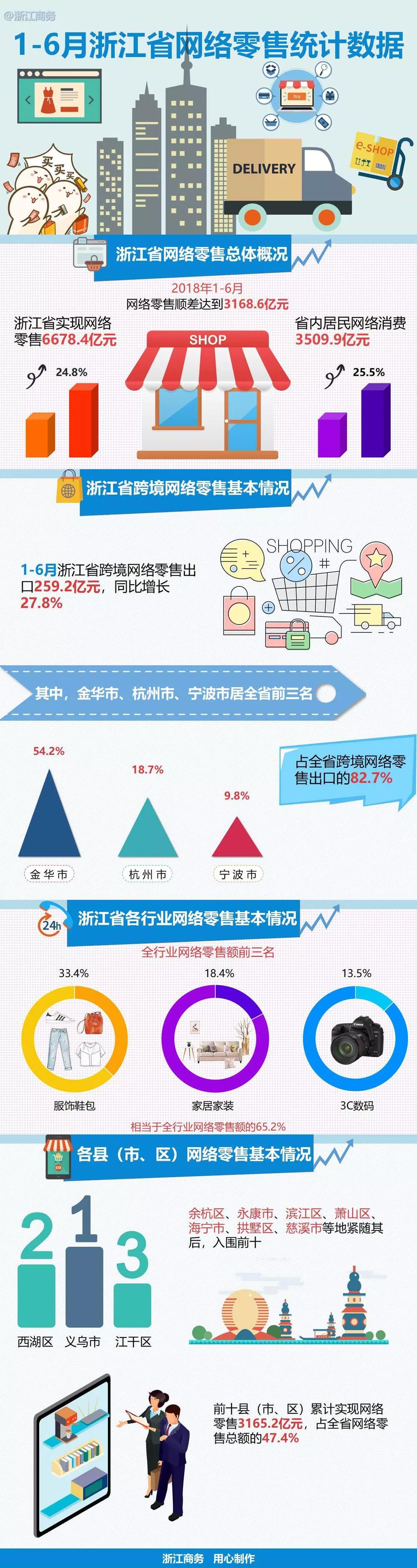 今年上半年浙江省网络零售数据发布 杭甬金占比82.7%