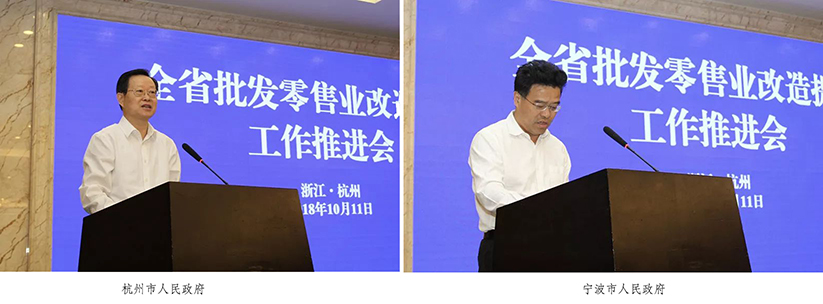 杭州市和宁波市政府就推进批发零售业改造提升作交流发言。