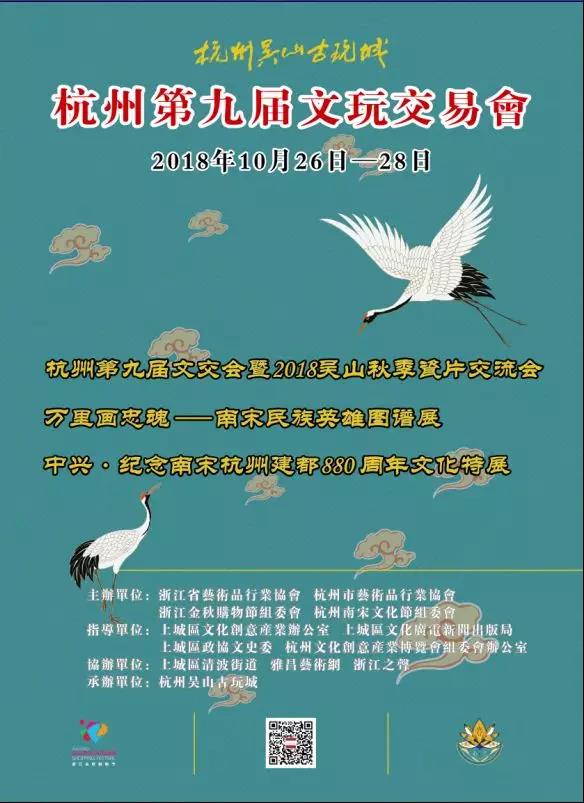 今年恰逢杭州南宋建都880周年,金秋十月又是杭州南宋文化节举办之时,作为对真正能展示南宋各种经典文化实物的吴山古玩城来说,特在本届文交会中策划举办二个与南宋文化紧密相关的大展,一是“万里画忠魂——南宋民族英雄图谱展”,这是社会上首次集中描绘南宋众多民族英雄的群像,对观众来说无疑是堂生动的爱国主义教育课;二是“中兴·纪念南宋杭州建都880周年文化特展”,则是国内民间至今最全面、最有独特内涵的一个充分展示大宋顶尖文化实物的展览,其中许多展品还是首次露面,故吸引了大批海内外文博专家、大藏家及收藏爱好者等前来观看、交流。现虽三天热闹非凡的交流会结束了,但二个特展将展到11月4日才结束,还未看展的可要抓紧难得的机会安排好时间来鉴赏交流了。已来本届文交会的领导和嘉宾先后有:上城区政协副主席陈少华,杭州市文创办副主任孙磊,上城区区委宣传部副部长、区文创办主任肖斌,浙江省艺术品行业协会会长、西泠拍卖总经理陆镜清,中国美院博导、著名画家吴山明,全联民间文物艺术品商会副会长安志跃、王玉奇,副秘书长薛正旗,上城区清波街道党工委书记周忠诚,故宫博物院研究员王光尧,浙江省博物馆陶瓷部主任沈琼华,杭州博物馆馆长杜正贤,台湾著名收藏家曹笑天、林俊哲以及上海、北京、重庆、广州、襄阳、宁波等地的古玩城、艺术机构负责人。